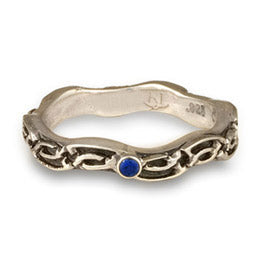 Celtic Wave (NB) Wedding Ring in Sterling Silver with Gem