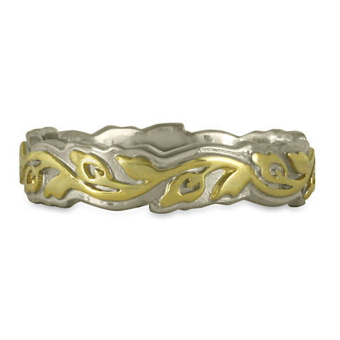 Narrow Borderless Flores Wedding Ring in Two Tone Gold 14K/18K