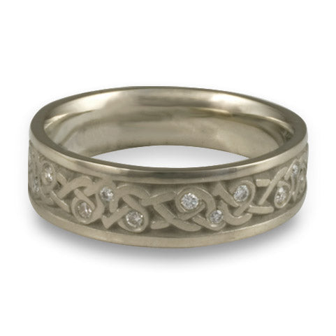 Narrow Celtic Hearts with Diamonds Wedding Ring in Palladium