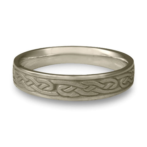 The infinity knot series that is used in this wedding ring represents the individual in all his or her wholeness, in all that is good and beautiful.