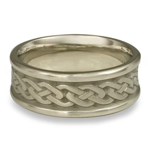 Narrow Self Bordered Celtic Link Wedding Ring in 18K White Gold