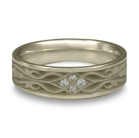 Narrow Tulip Braid Wedding Ring with Diamonds in Palladium