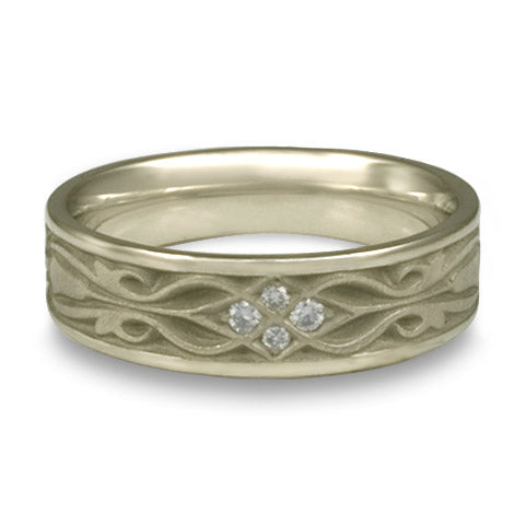 Narrow Tulip Braid Wedding Ring with Diamonds in Platinum
