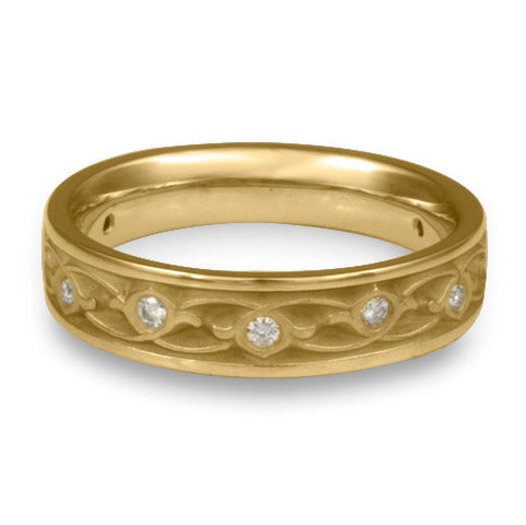 Narrow Water Lilies Wedding Ring With Diamonds in 14K Yellow Gold