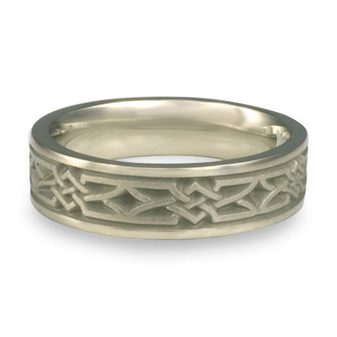 With the knot work in the Weaving Stars ring, the emphasis, with the rectangular design, is on strong personal communication within the borders of commitment, represented by the circularity of the ring.