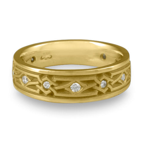 Narrow Weaving Stars With Diamonds Wedding Ring in 18K Yellow Gold