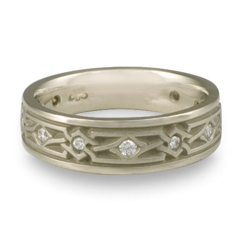 Narrow Weaving Stars With Diamonds Wedding Ring in Palladium