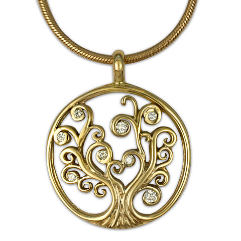 Tree of Life Small Gold Pendant 14KY with Diamonds