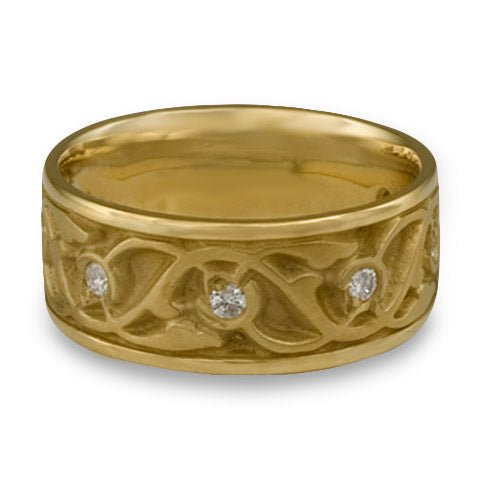 Wide Tulips and Vines Wedding Ring With Diamonds in 18K Yellow Gold